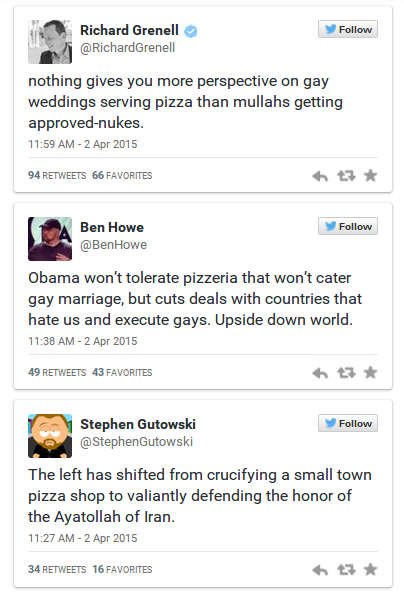 Luke Brinker at Salon gathered some of the initial conservative reactions to the Iran deal. I'm sure they very thoughtfully and deliberately pored over the details before making these pronouncements: