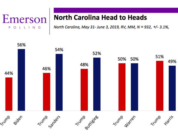 This was largely true in the Ipsos poll as well. Former Vice President Joe Biden bested Trump by a 46-35 percent margin in a hypothetical matchup, while Sen. Bernie Sanders (I-VT) beat Trump by a margin of 47-35 percent. By contrast, Sen. Elizabeth Warren (D-MA) beat Trump by a 42-36 percent margin and Sen. Kamala Harris (D-CA) beat him by a margin of 41-35 percent.